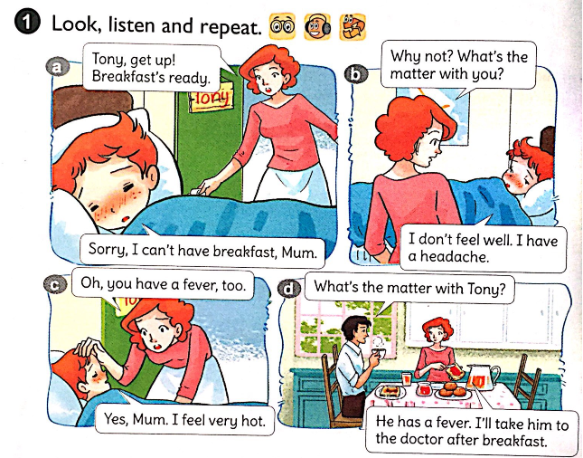 Con cảm thấy không khỏe. Con bị đau đâu.