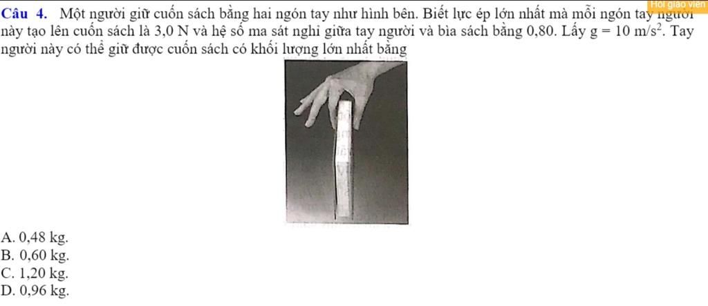 $=>m=\frac{2F_{ms}}{g}=\frac{2.2,4}{10}=0,48(kg)$