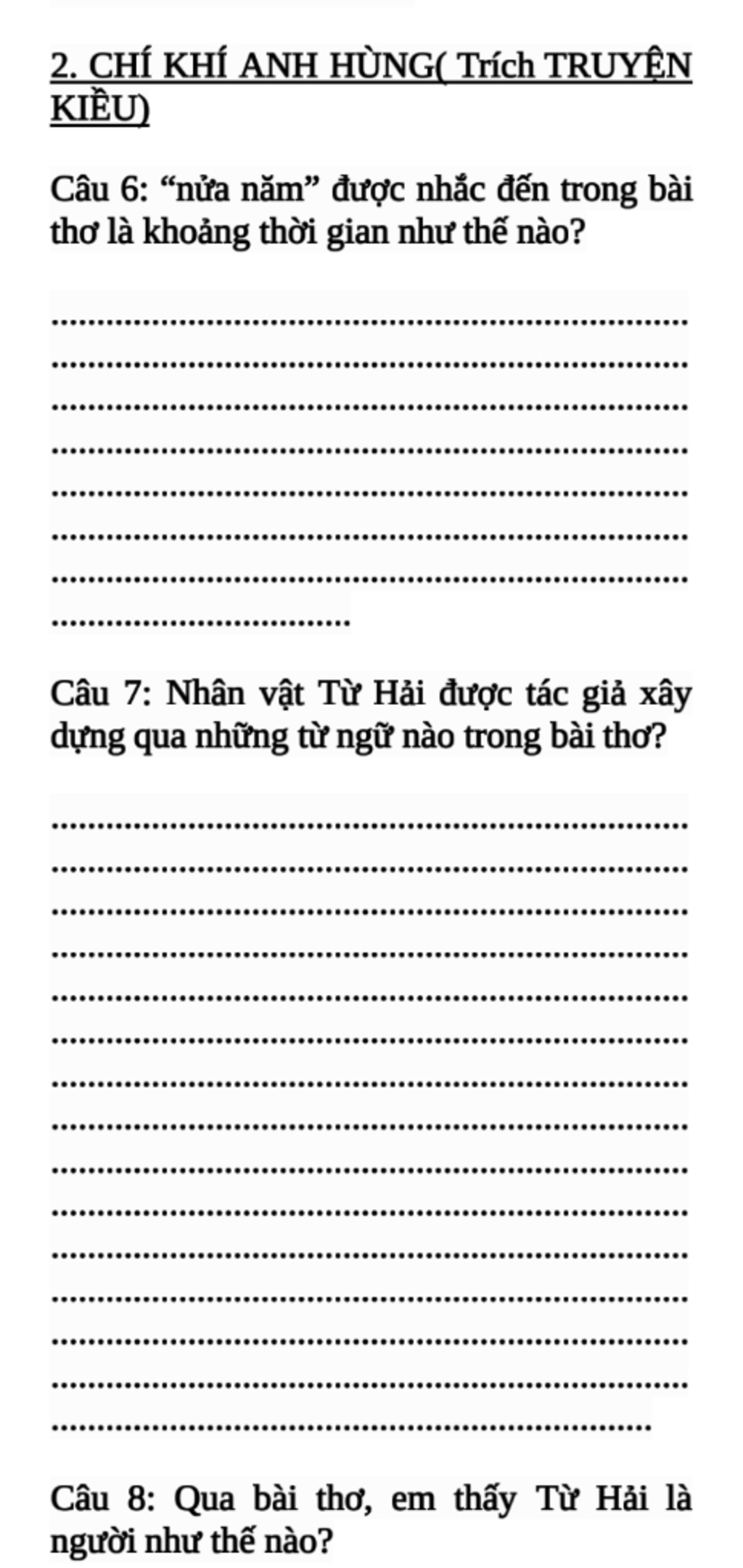 Câu 8: Theo em thì Từ Hải là một kiểu hình tượng nhân vật vừa thật thà vừa sâu sắc vừa dũng cảm gan dạ