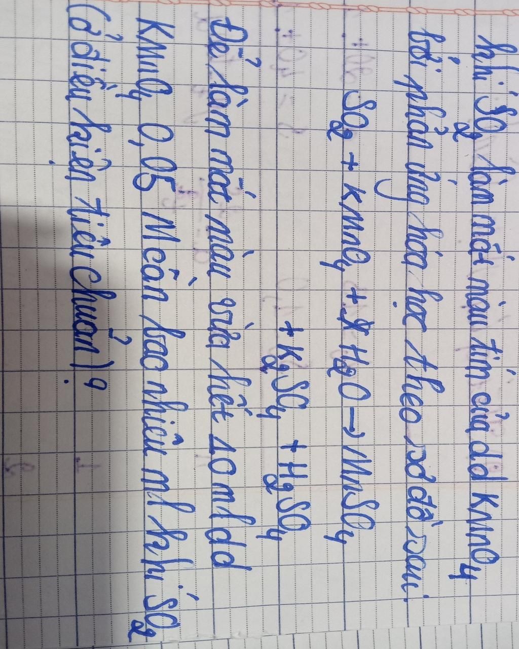 Theo PT ta có: nSO2=5/2nKMnO4=5/2x0.005=0.00125(mol)