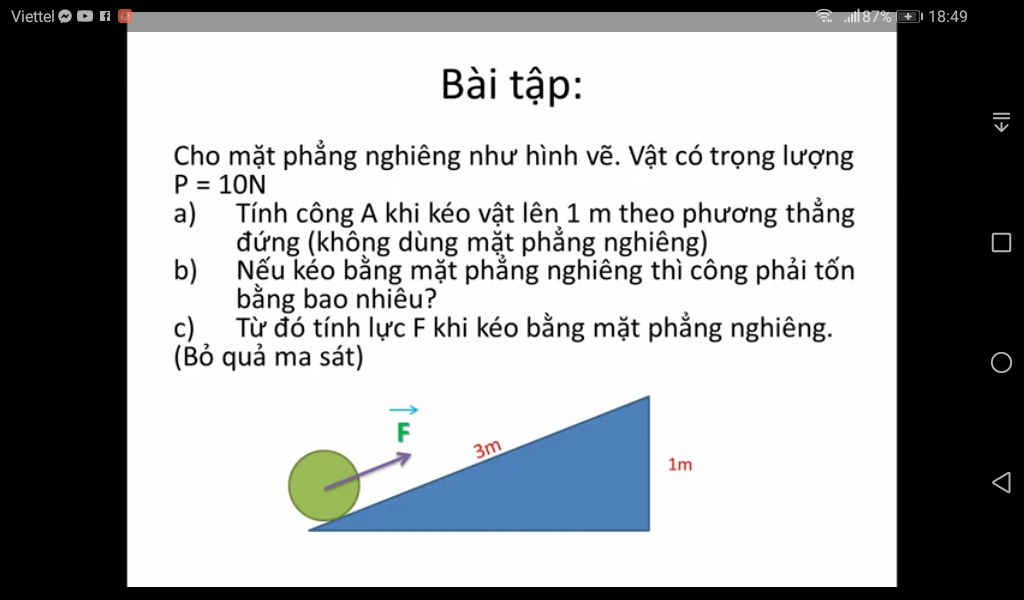 b. CÔng kéo vật bằng mặt phẳng nghiêng là: