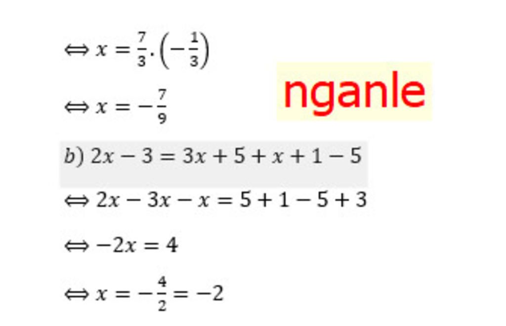 $\Leftrightarrow$ $\text{2x - 3x - x = 5 - 5 + 1 + 3}$