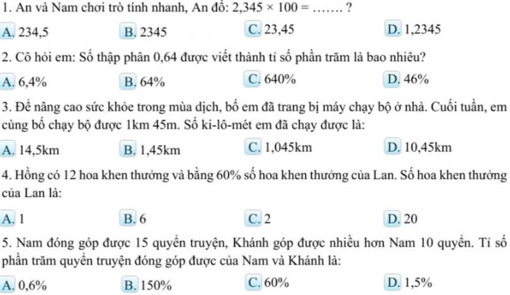 2.muốn chuyển thành tỉ số phần trăm thì lấy số đó x100