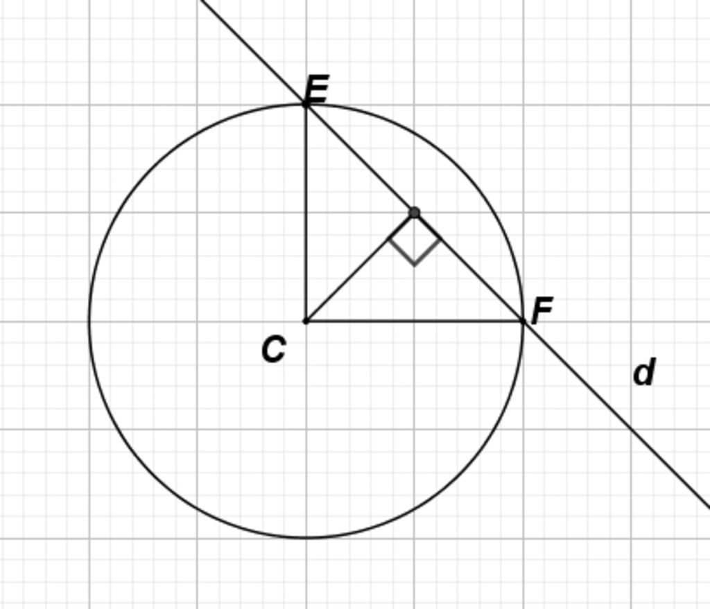 \Rightarrow R = \sqrt {{d^2} + {{\left( {\frac{{EF}}{2}} \right)}^2}} = \sqrt {2 + 2} = 2\sqrt 2 \\