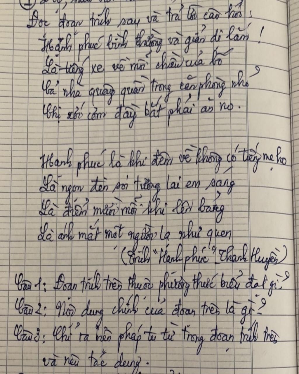 `-` Biện pháp tu từ : So sánh ( Hạnh phúc là .... , ánh mắt người lạ như quen )