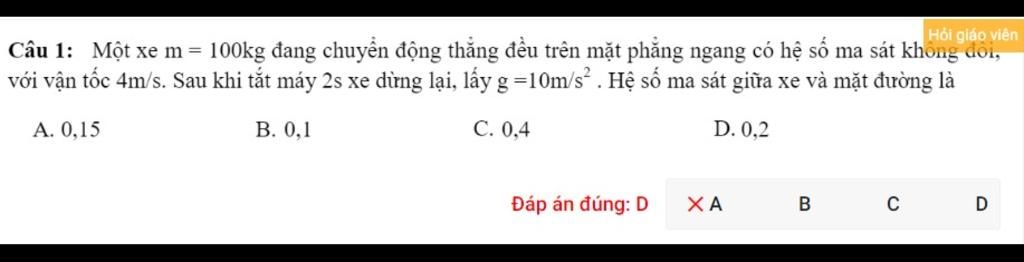 Hệ số ma sát giữa xe và mặt đường: