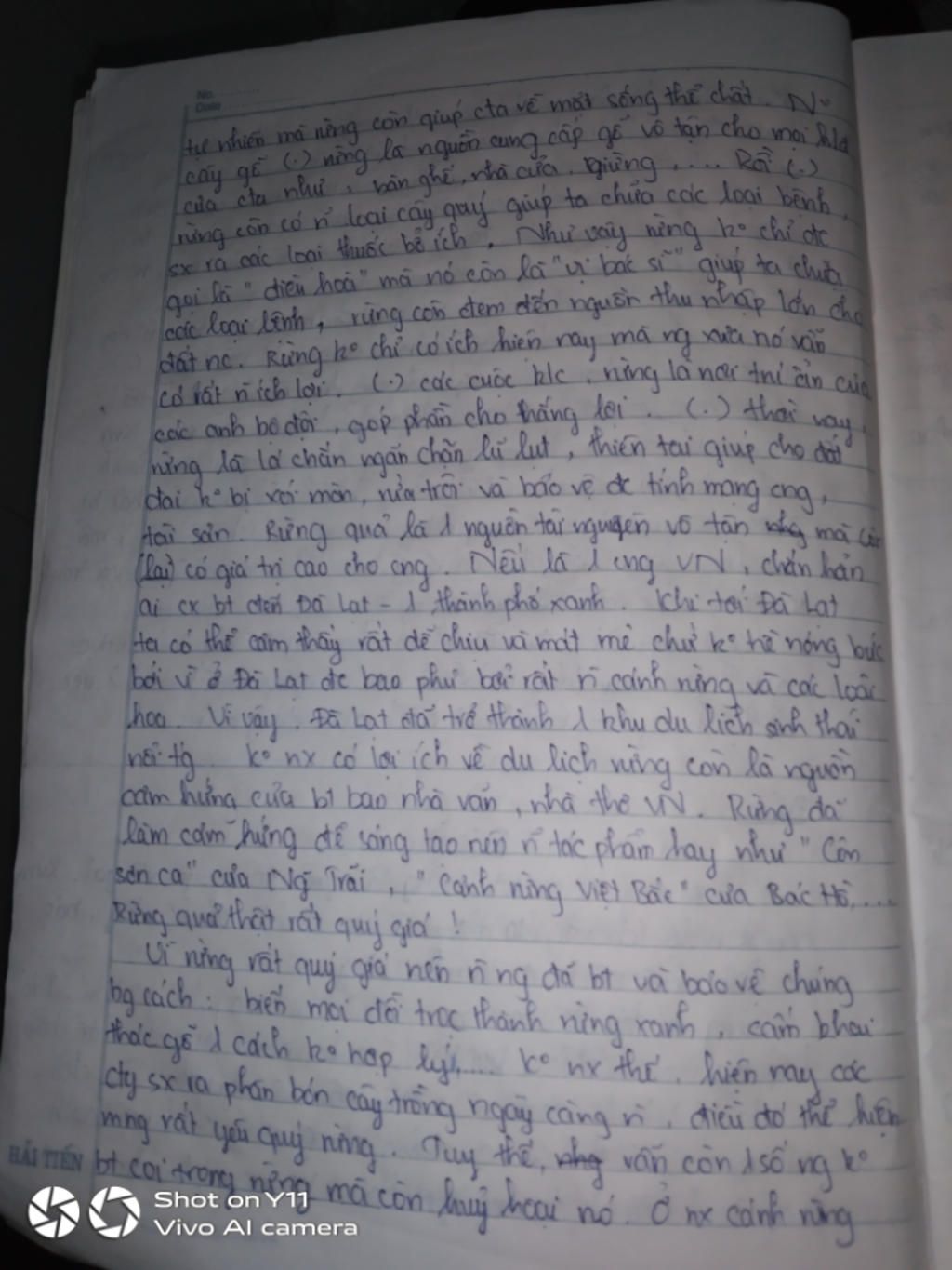 Có ý kiến cho rằng: Bảo vệ môi trường là bảo vệ cuộc sống của chúng ta. Đúng vậy ! Trong cuộc sống, chúng ta có thể tồn tại được là nhờ có môi trường. Vậy, môi trường là gì ? Những cơ sở vật chất như là: nước, không khí, đất, ... tất cả đều thuộc phương diện chung là môi trường. Chắc có lẽ, ai cũng sẽ biết vai trò của từng thành phần trên rồi. Không khí cung cấp nguồn thở cho chúng ta, đây là điều kiện quan trọng nhất để mỗi người có thể sống sót. Nếu nguồn không khí bị ô nhiễm thì dần dần khí Cacbonic sẽ được tồn tại nhiều còn khí oxi dần cạn kiệt. Vậy có thể kết luận rằng chúng ta sẽ chết nếu không khí bị ô nhiễm. Hay nước giúp cho chúng ta không bị khát, nếu nước bị ô nhiễm thì chúng ta sẽ không có thứ gì để uống hoặc ngay cả là dùng trong sinh hoạt hằng ngày; thức ăn thì có thể nhịn được mấy ngày vẫn sống sót nhưng nước là yếu tố chiếm tỉ lệ quan trọng đối với tính mạng của chúng ta; thiếu nước quá lâu sẽ có thể bị tử vong. Chỉ cần thế thôi, chúng ta cũng đa đủ để chứng minh là '' bảo vệ môi trường là bảo vệ cuộc sống của chúng ta ''.