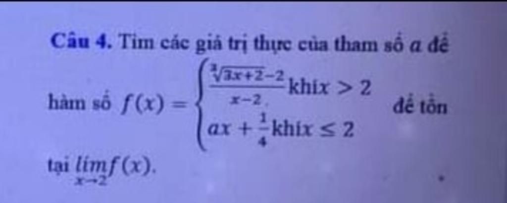 Để hàm số tồn tại `lim_(xto2)f(x)` thì: