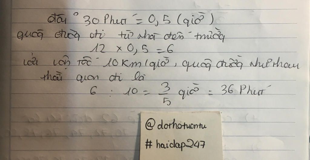 Vậy nếu Hằng đi với vận tốc 10km/h thì Hằng đi từ nhà đến trường hết 36 phút.