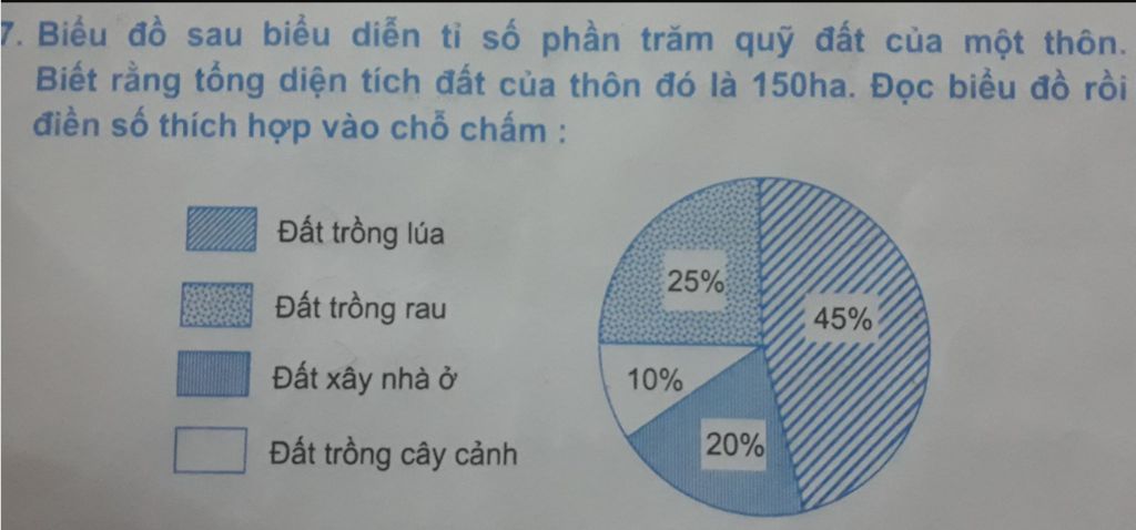 a) Có 45 % tổng quỹ đất trồng lúa. Vậy có 67,5 ha đất trông lúa.
