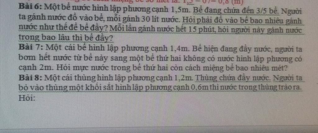 Chiều cao mực nước trong bể thứ hai còn cách miệng bể: