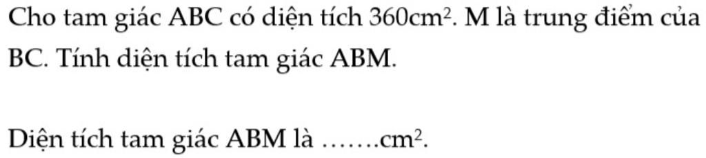 Ta có diện tích tam giác ABC = `1/2` x AH x BC = 360 ( `cm^2`)