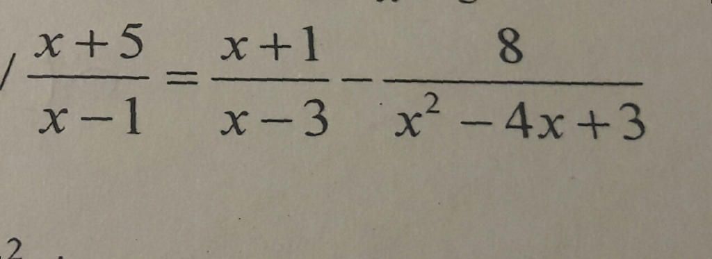 $⇔\frac{x+5}{x-1}-\frac{x+1}{x-3}+\frac{8}{(x-1)(x-3)}=0$