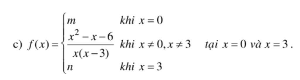 Tìm m n, để hàm số liên tục tại điểm được chỉ ra: (tính liên tục của hàm số tại một điểm)m khi x = 0 %3D x² - x-6 c) f(x)= khi x+ 0,x± 3 tại x =0 và x = 3. x(х