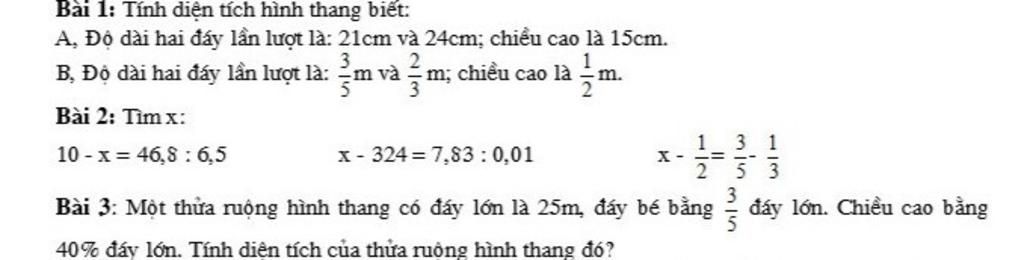 b) Diện tích hình thang là :