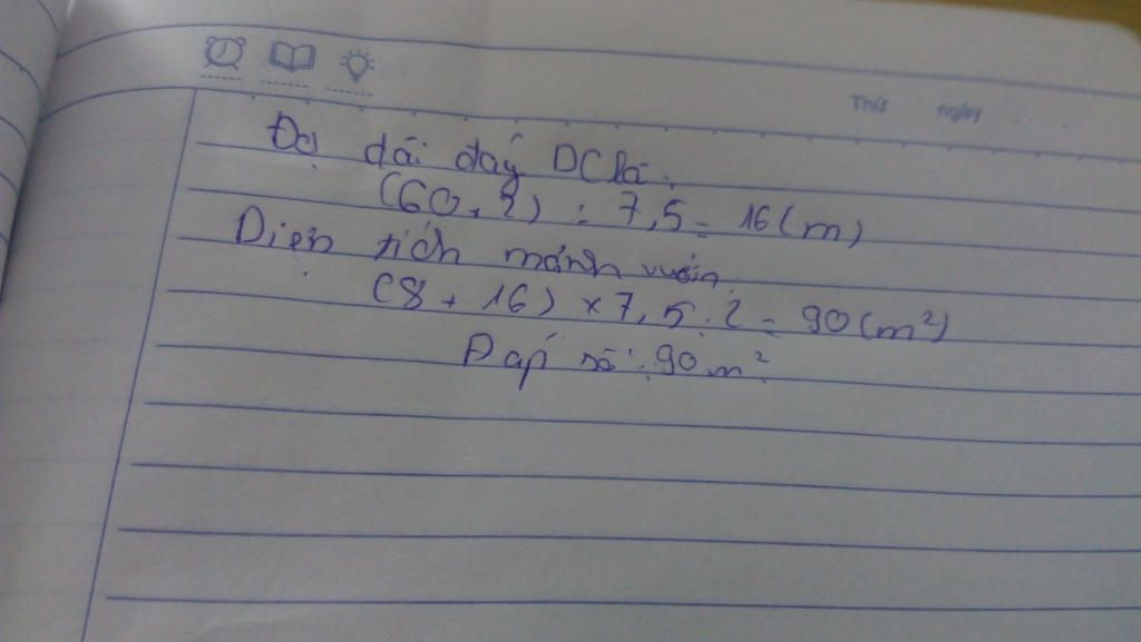 ( 8 + 16 ) x 7,5 : 2 = 90 ( m² )