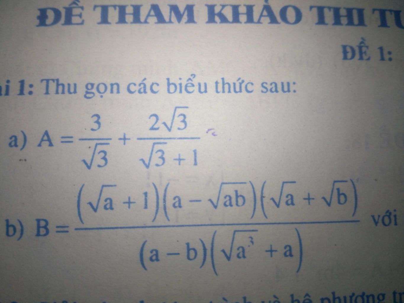 a)$A=\frac{3}{\sqrt{3}}+\frac{2\sqrt{3}}{\sqrt{3}+1}$