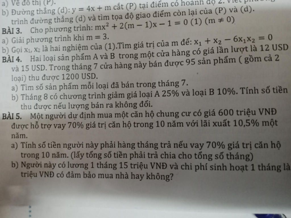 a) Vẽ đô thị (P). b) Đường thẳng (d): y = 4x + m cắt (P) tại điểm có hoành dọ trình đường thẳng (d) và tìm tọa độ giao điểm còn lại của (P) và (d). BÀI 3.