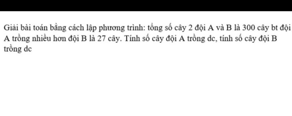 Vậy số cây đội A trồng được là 163,5 cây ; số cây đội B trồng được là 136,5 cây
