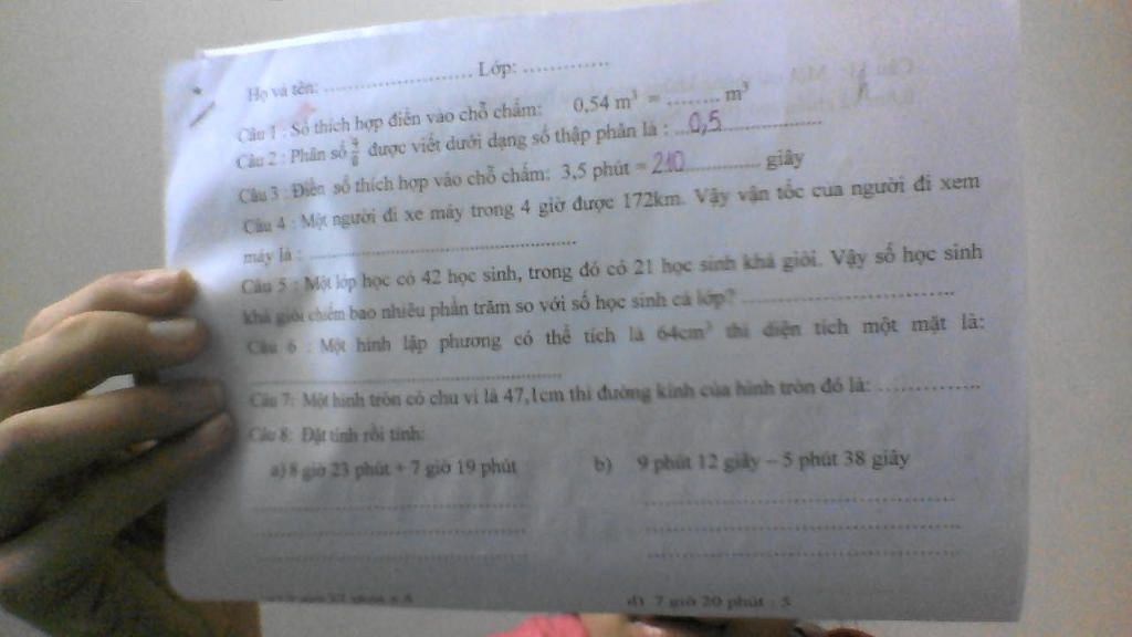 Cầu 3 Điền số thích hợp vào chỗ chấm: 3,5 phút = 210 giây