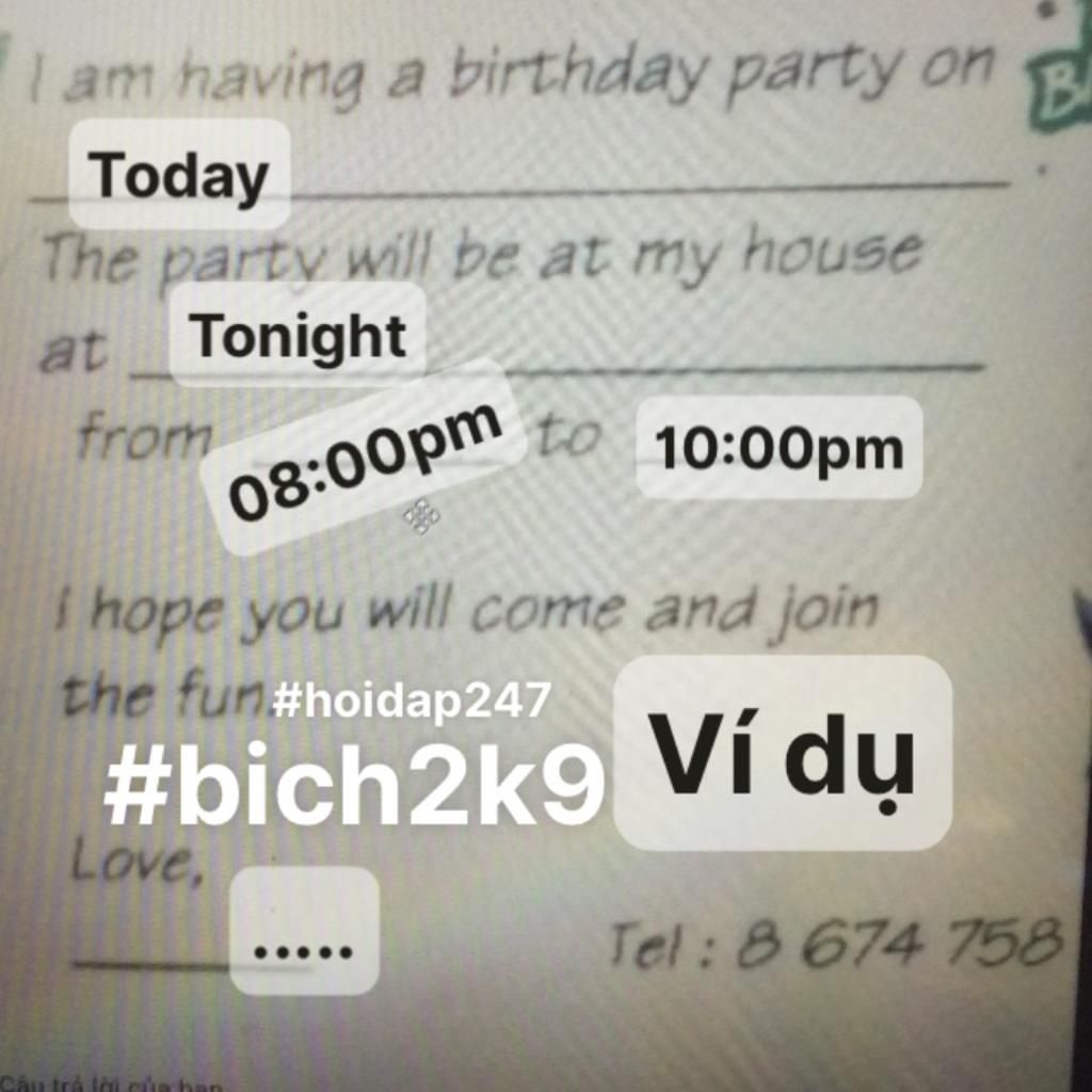 Dear | am having a birthday party on BIR The party will be at my house at from to i hope you will come and join the fun. Love, Tel: 8 674 758 Câu trả lời c