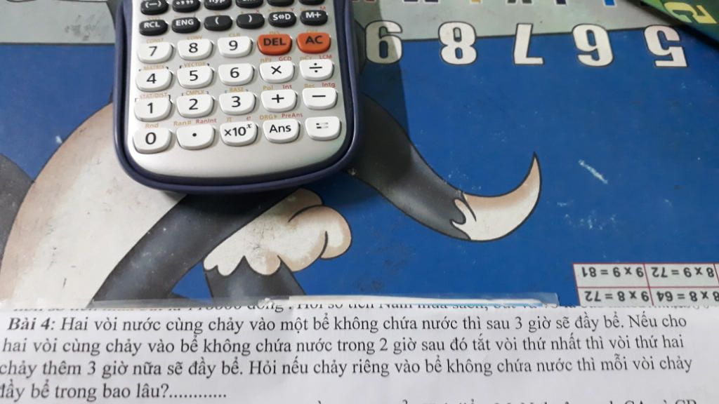 Đáp số: vòi thứ nhất: $4,5$ giờ, vòi thứ hai: $9$ giờ