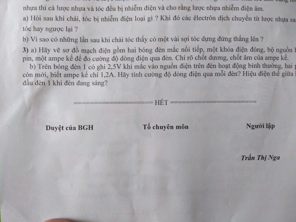 Hiệu điện thế giữa hai đầu đèn 1 khi đèn đang sáng bình thường: