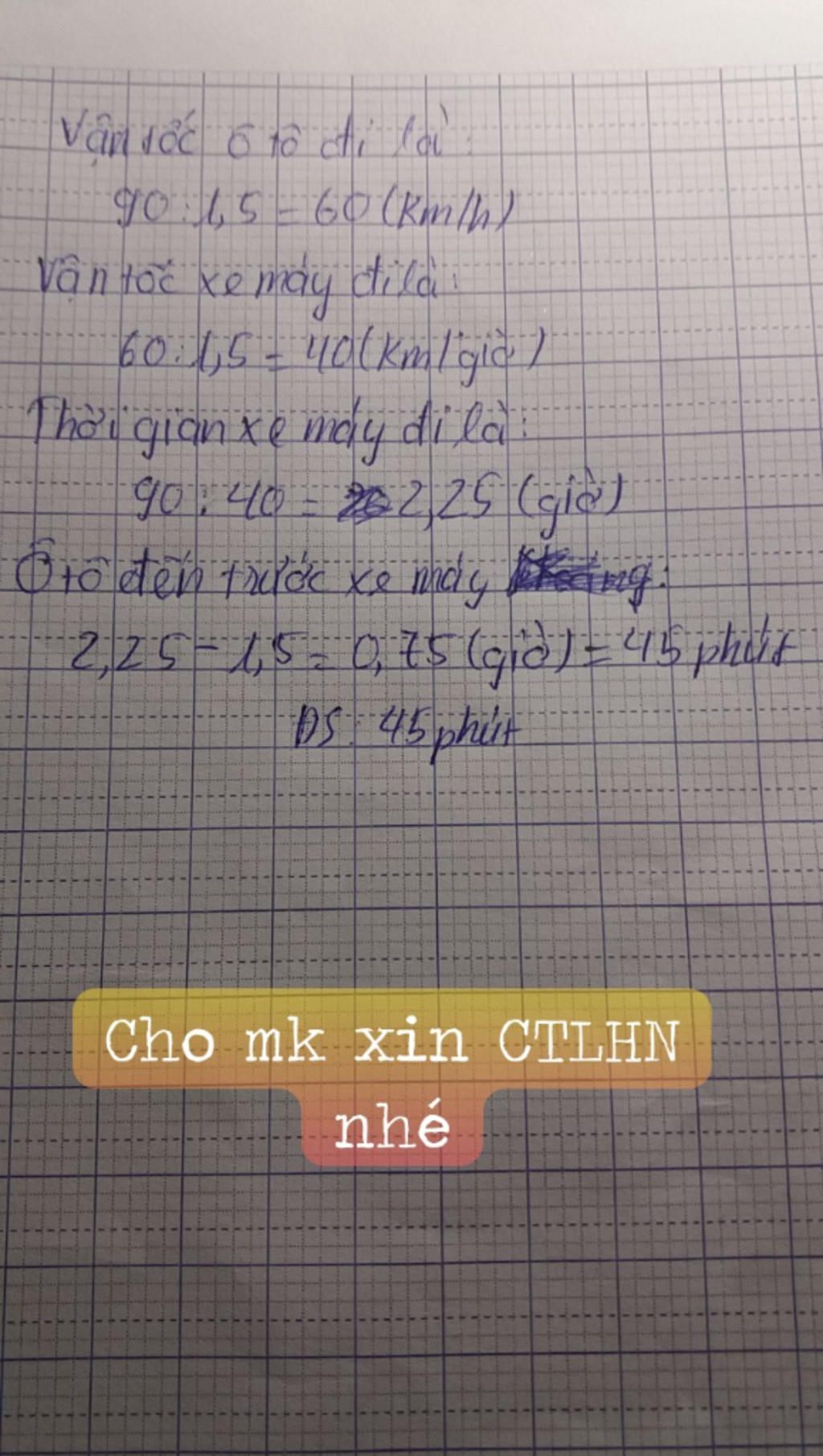 90:40=2,5(giờ)