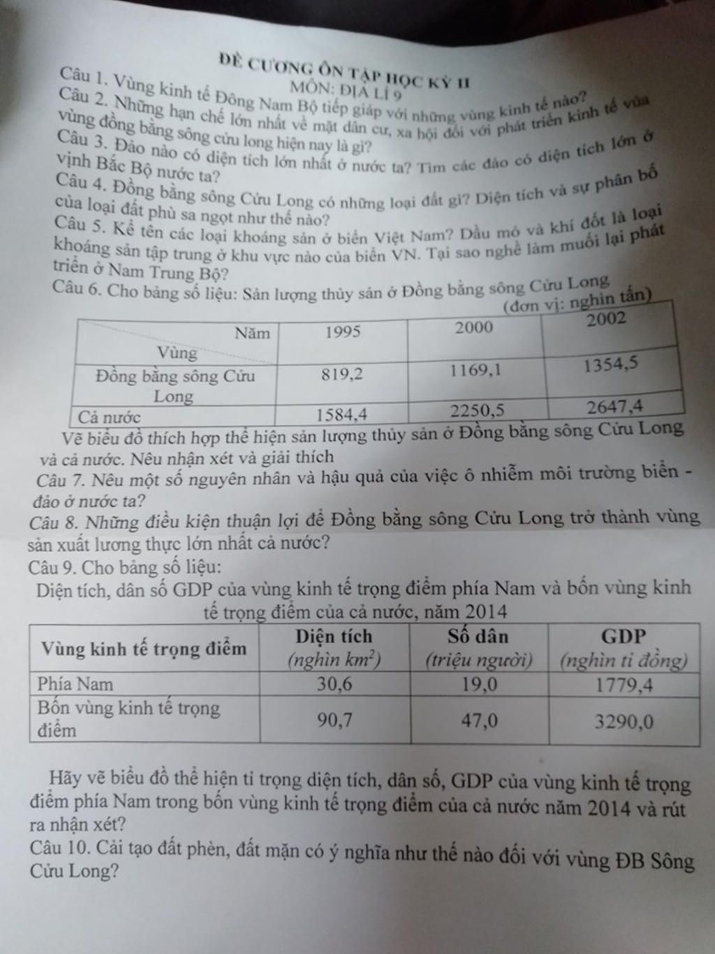 mọi người giải giúp em vs ạ từ câu 6 đến hết em đang cần gấp Câu 1. Vùng kinh tế Đông Nam Bộ tiếp giáp với những vùng kinh tế nào? ĐE CUONG ON TẬP HỌC KỲ II M