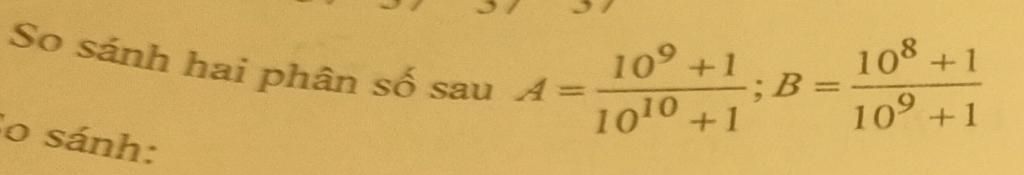 $Vì$`10^{10} + 1 > 10^9 + 1`