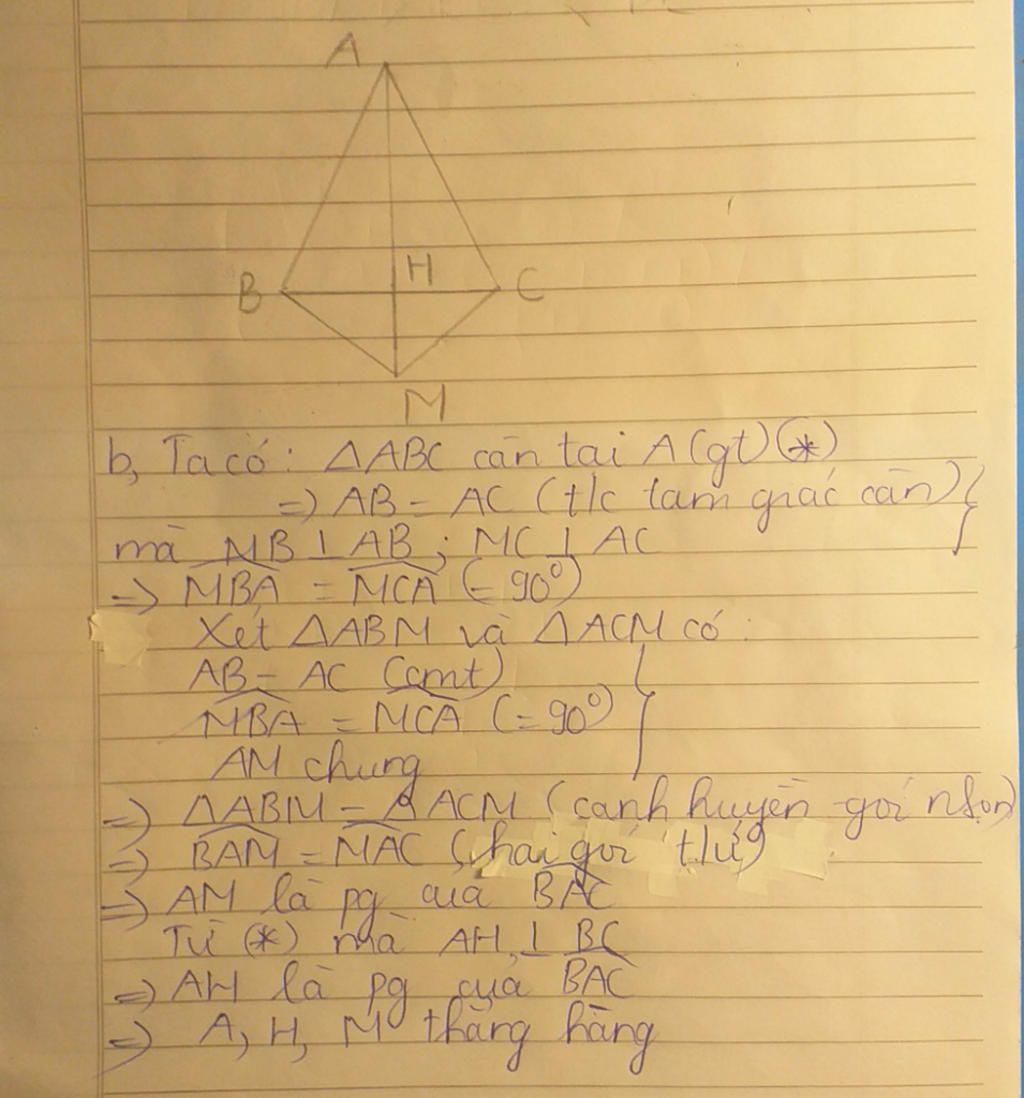 b.Ta có : $\Delta ABC$ cân tại A $\to AB=AC$