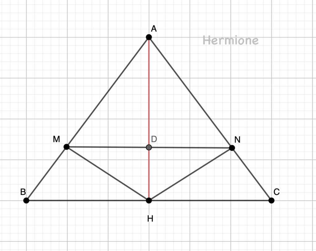 `(1)` và `(2)` `-> AH` hay `AD` là phân giác của `ΔAMN`