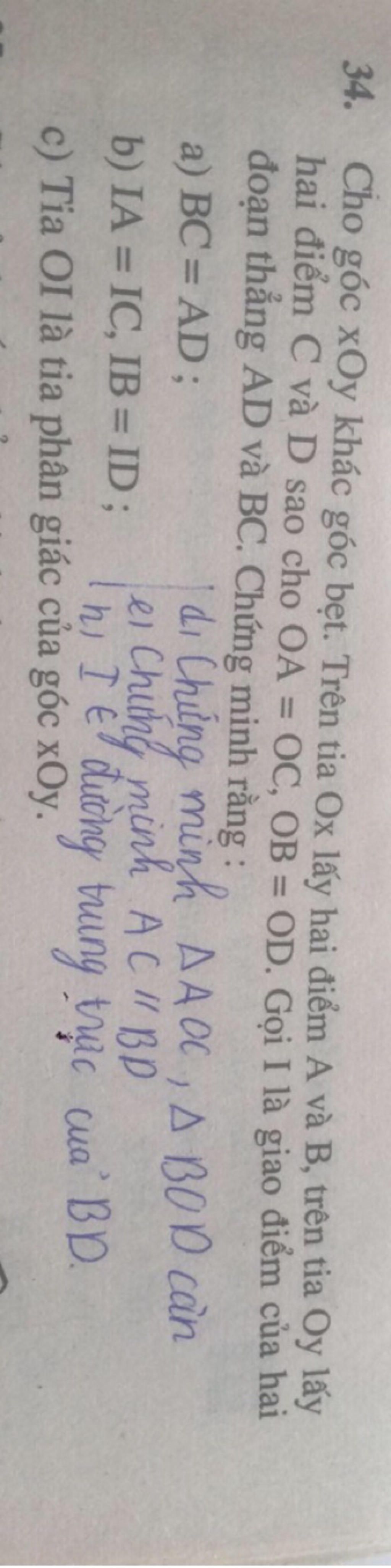 e.Vì $\Delta AOC,\Delta OBD$ cân tại $O$