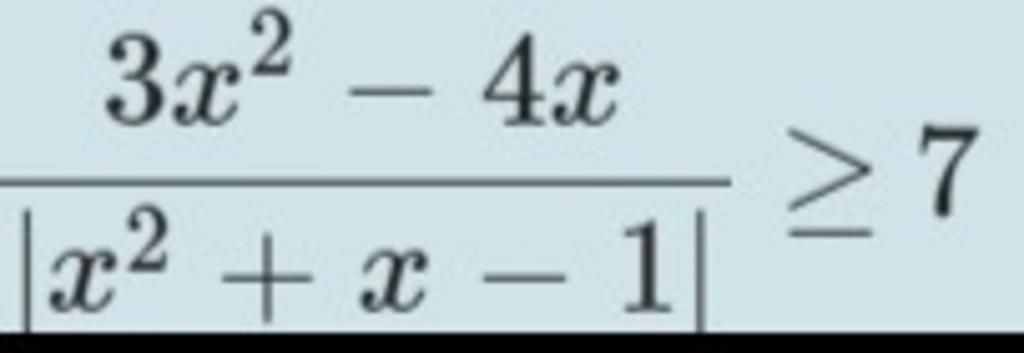 `(3x^2-4x)/|x^2+x-1|>=7`