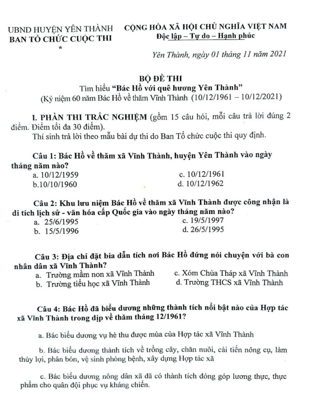Bác Hồ về thăm xã Vĩnh Thành, huyện Yên Thành vào ngày `10-12-1961`.