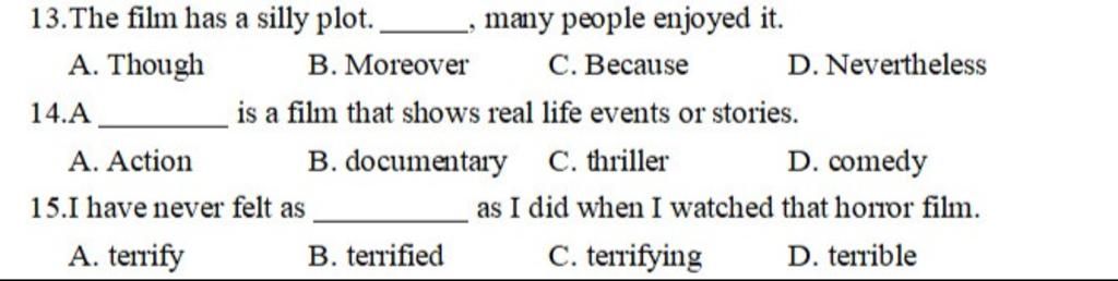 $⇒$ Điền Documentary (n): Phim tài liệu