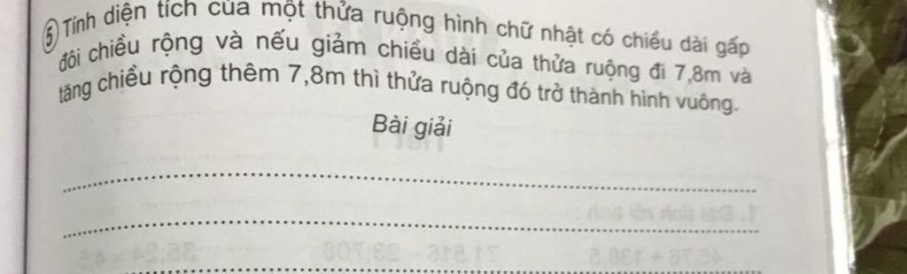 Sau khi giảm chiều dài ban đầu đi 7,8, chiều rộng tăng 7,8 ta đc hv. Mà hình vuông thì có các cạnh = nên chiều rộng sẽ bằng chiều dài: