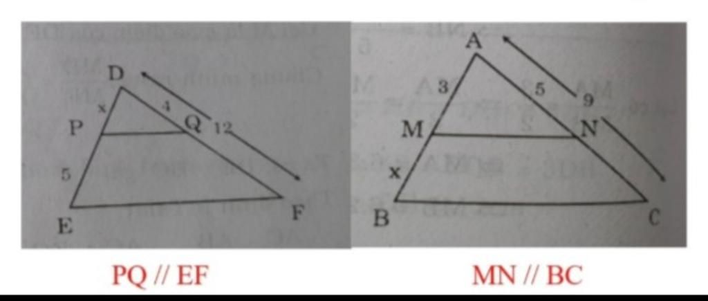 `(DP)/(PE)=(DG)/(QF)` hay `x/5=4/8`