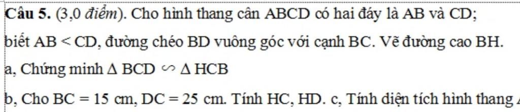 `a)` Xét `ΔBCD` và `ΔHCB`