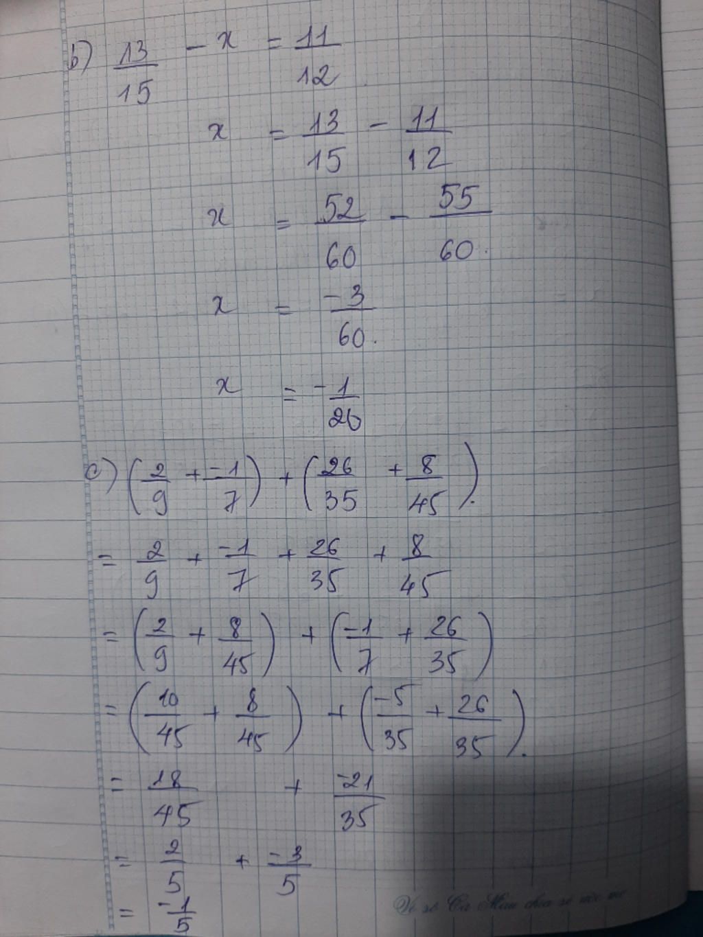 BTVN: BT1: Dimx, biết . 8. 12 15 20 15 20 BT2: Thức hiện Phép tính: 19 25 135 82 -127 132 135 135 b) 13 -x= 11 15 26 12 35 45