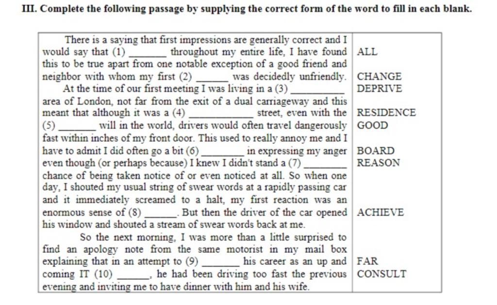 III. Complete the following passage by supplying the correct form of the word to fill in each blank. There is a saying that first impressions are generally