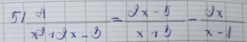 `=>4/((x-1)(x+3))=((2x-5)(x-1))/((x+3)(x-1))-(2x(x+3))/((x-1)(x+3))`