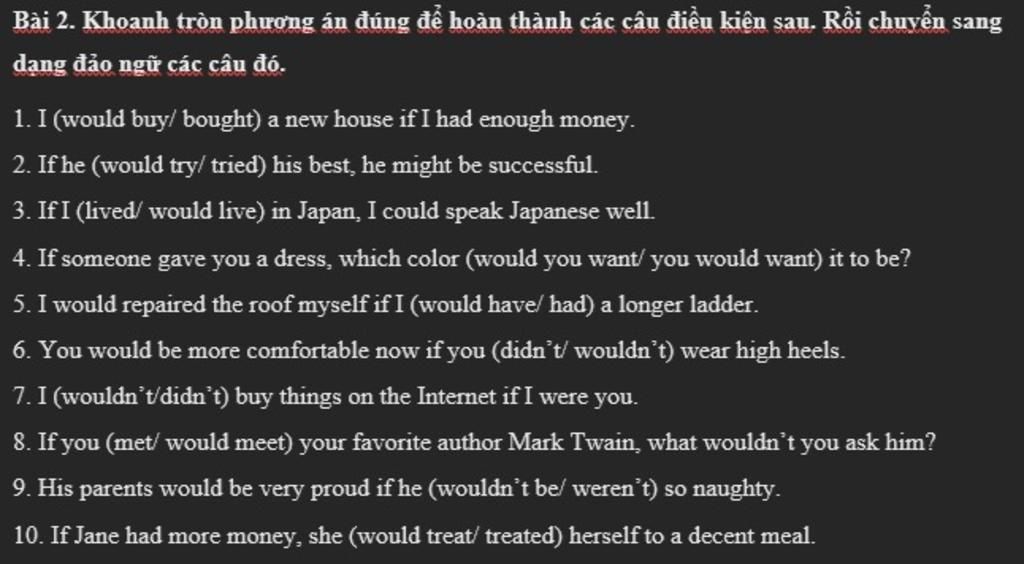 `->` CĐN : Were I to have enough money, I would buy a new house