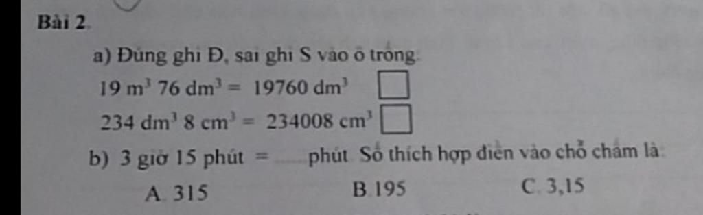 ⇒ vì : 19 m³ 76 dm³ = 19076 dm³