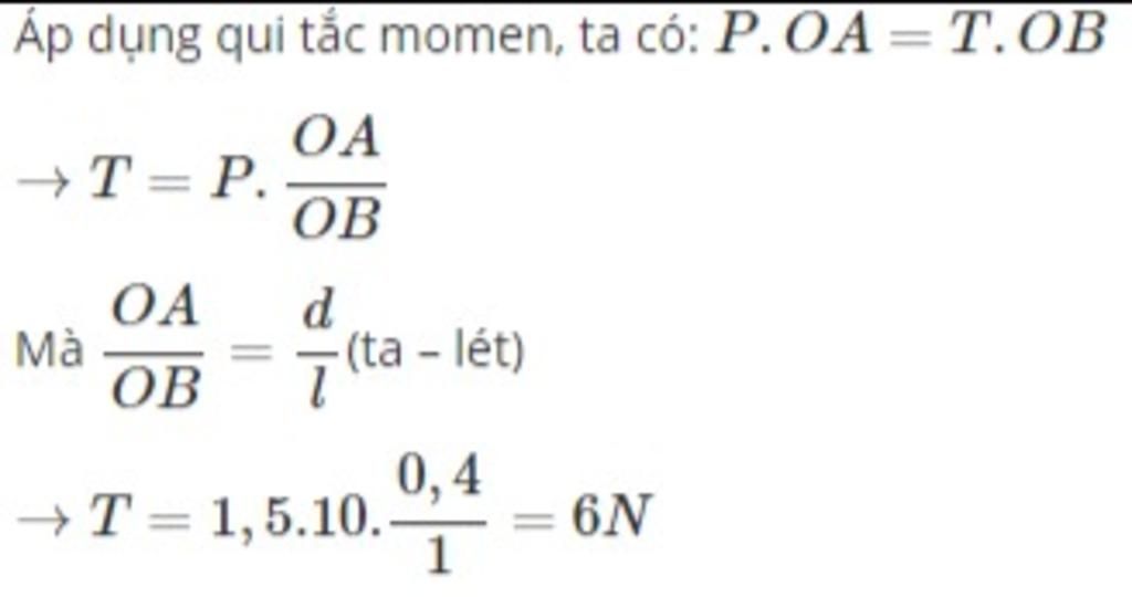 T=P$\frac{d}{l}$ =1,5x10$\frac{0,4}{1}$ =6N