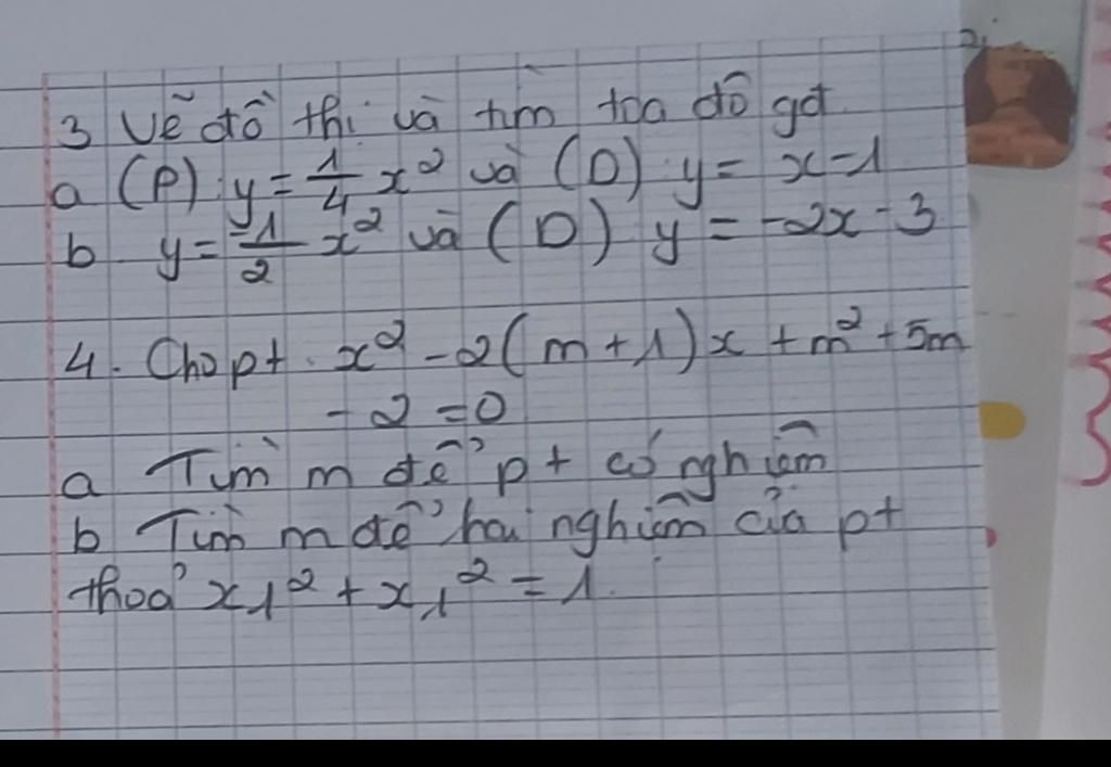 Mấy anh chị giải chi tiết hộ em 2 bài này nha em hứa vote 5* đủ ạ3 Ue đô thii vä tim toa do get b y= vã (0) y 4. Chopt xa -2(m+1)x +m+ Sm Tum m đ é pt co mph i