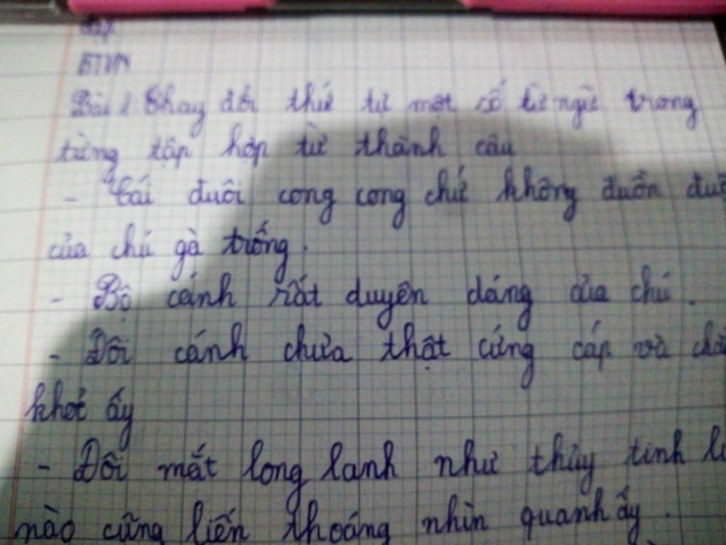 -Cái đuôi của chú gà trống cong cong chứ không đuồn đuột.
