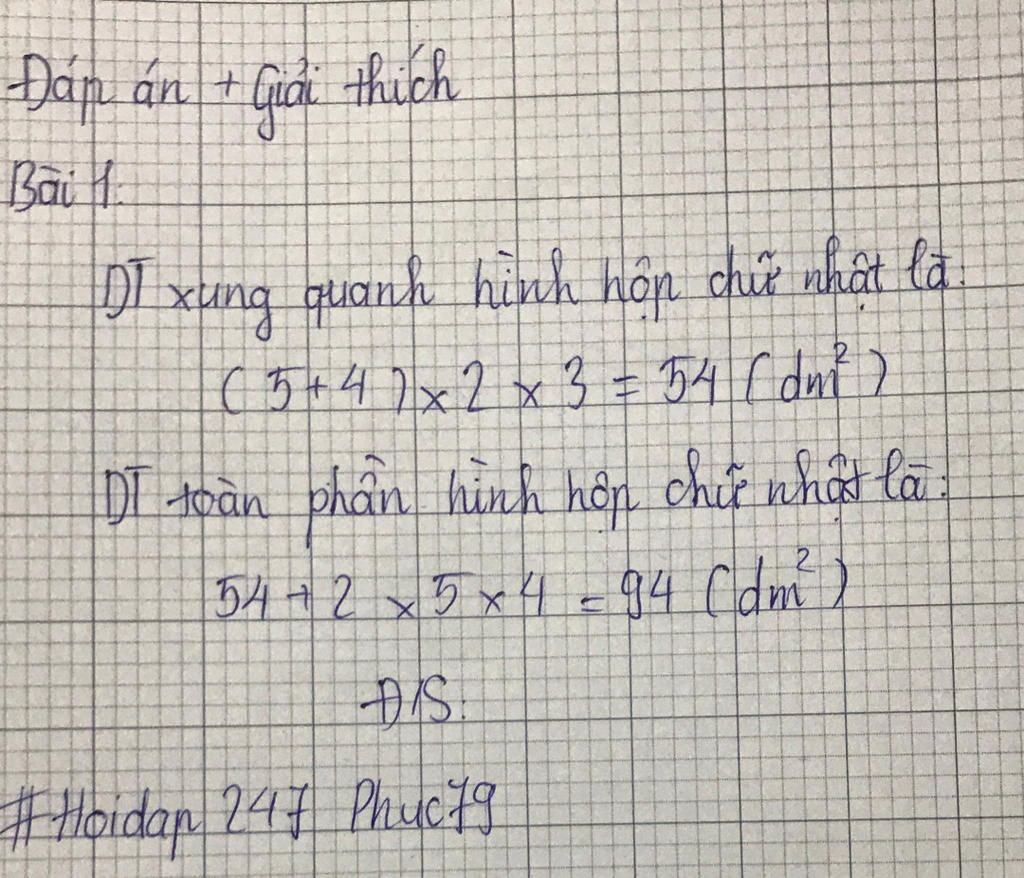 `( 5 + 4 ) ` x `2` x `3` `54` `( dm^2 )`