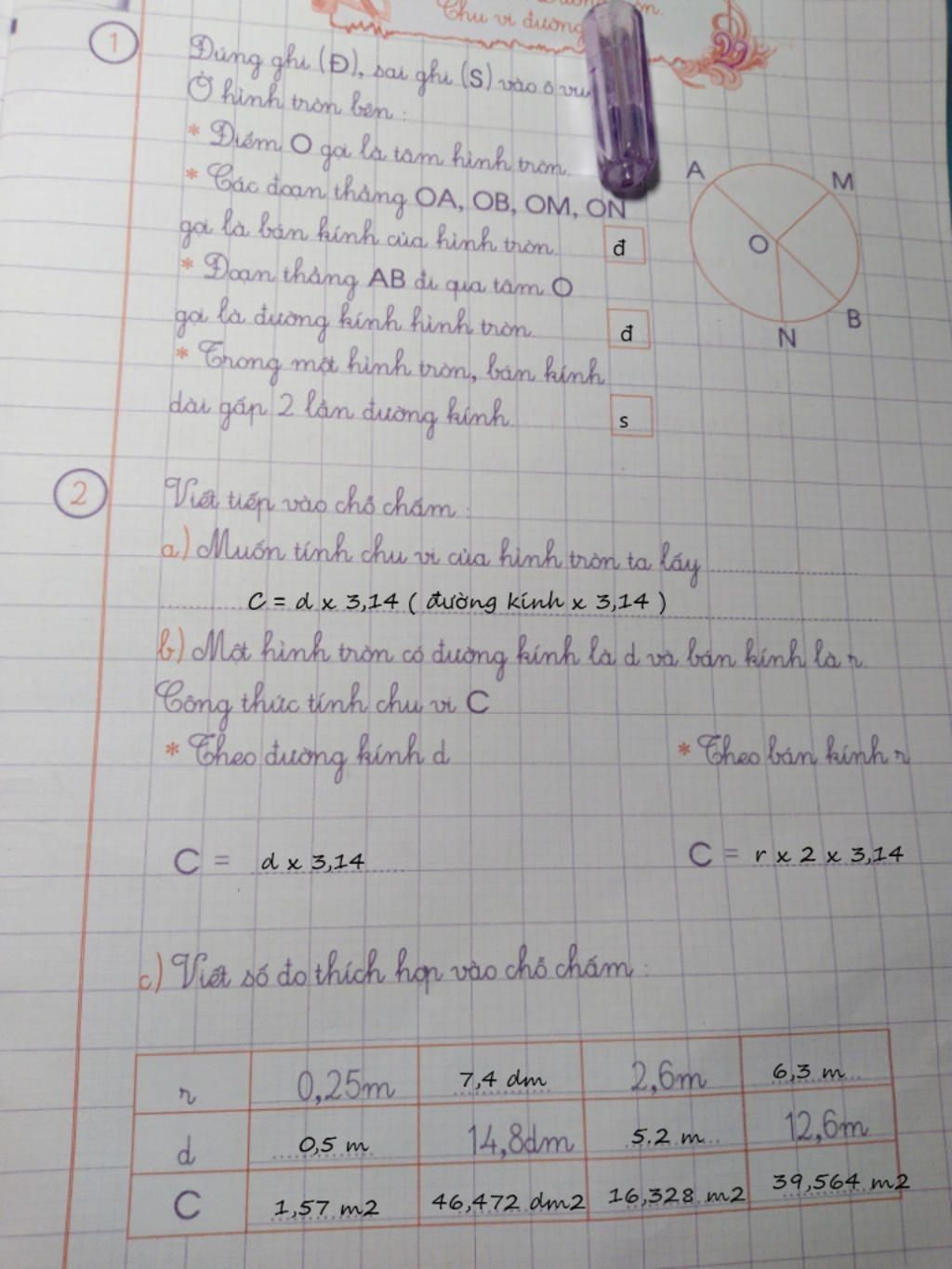 -Công thức của chu vi hình tròn là lấy đường kính nhân với pi hay 2 lần bán kính nhân pi.(3,14)