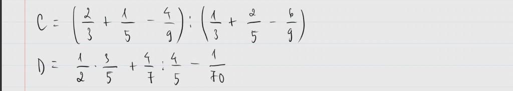 `D= 1/2 . 3/5 + 4/7 : 4/5 -1/70`